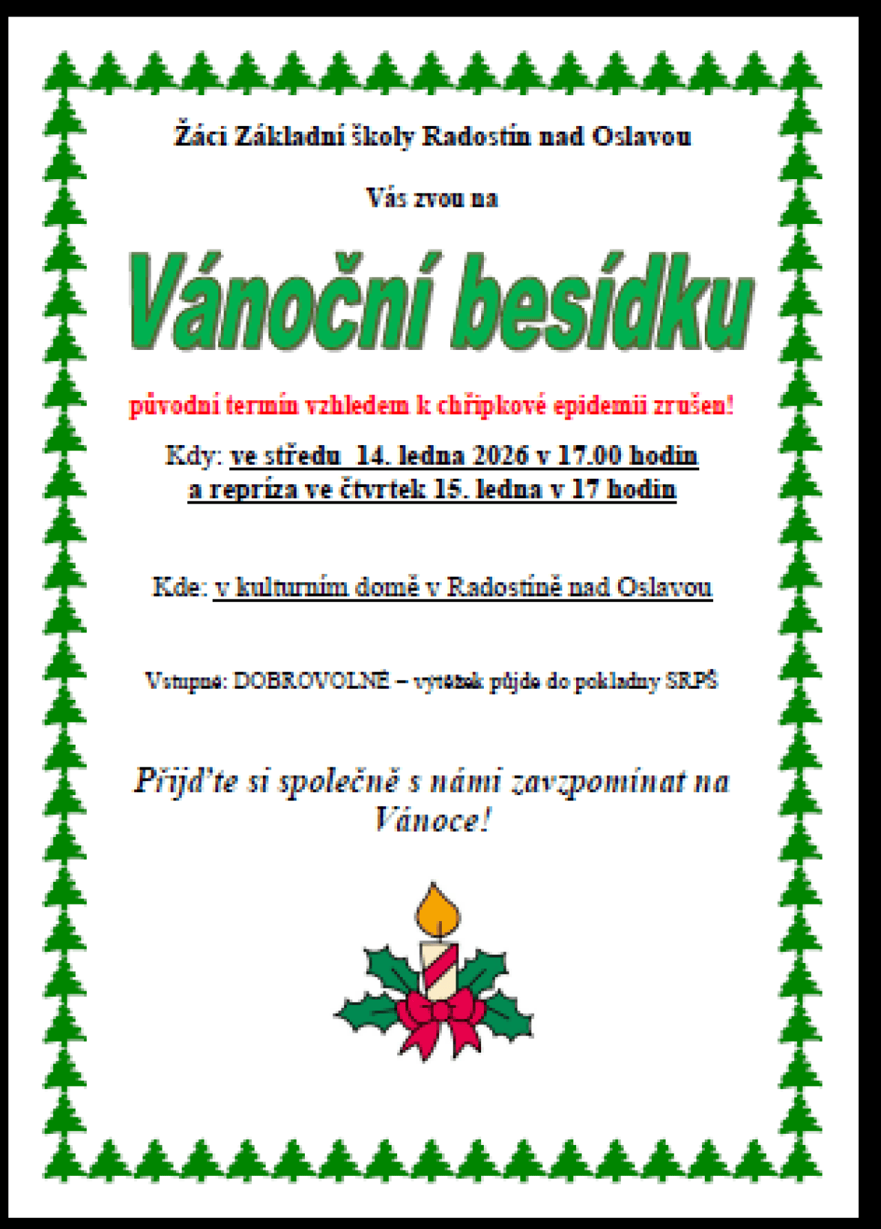 Pozvánka na vánoční besídku - nový termín